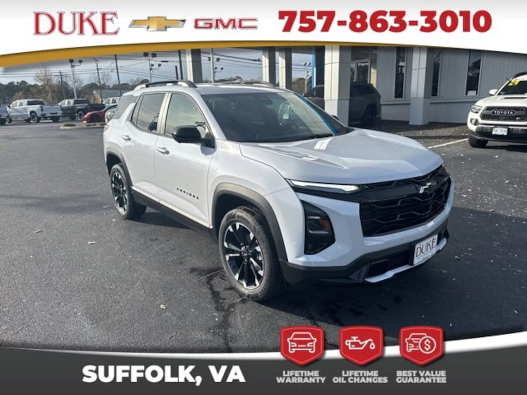 Look at this 2026 Chevrolet Equinox RS At Duke Chevrolet GMC in Suffolk VA. 757-539-8777 It's All About U with Lifetime U Rewards. All New Chevy & GMC vehicles come with a Lifetime Powertrain Warranty, Lifetime Oil Changes, our Best Price Guarantee. Plus VA State Inspections, 4-Day 200-Mile Exchange, and Lifetime Service & Parts Guarantee! Read our reviews & see why people choose Duke! Forward Collision Alert, Adaptive Cruise Control, Lane Departure Assist, Blind Spot Technology, Back Up Warning Sensors, Navigation, Apple CarPlay & Android Auto, 4G LTE WiFi Hotspot Built In, Chevy MyLink, Infotainment Package, Premium Audio Package, Back Up Camera, Bluetooth, Sirus XM Radio, OnStar, Heated & Cooled Seats, Power Liftgate, Equinox RS, 4D Sport Utility, 1.5L DOHC, CVT, FWD, Polar White Tricoat, Black With Red Accents Evotex, Convenience Package III, Front Fog Lamps, Front Passenger 2-Way Power Lumbar Seat Adjuster, Front Passenger 8-Way Power Seat Adjuster, HD Surround Vision, Heated Rear Outboard Seating Positions, Memory Settings, Navigation System, Rear Pedestrian Alert, Safety & Technology Package, Traffic Sign Recognition, Ventilated Driver Seat, Ventilated Front Passenger Seat.