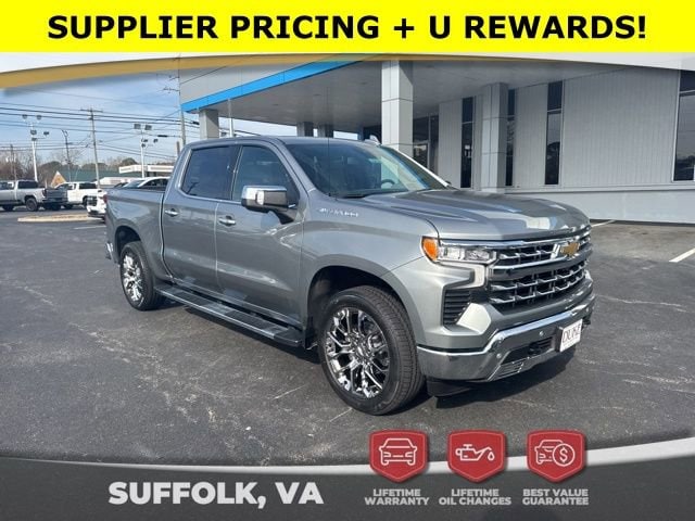 Look at this 2026 Chevrolet Silverado 1500 LTZ At Duke Chevrolet GMC in Suffolk VA. 757-539-8777 "It's All About U" with Lifetime U Rewards. All New Chevy & GMC vehicles come with a Lifetime Powertrain Warranty, Lifetime Oil Changes, our Best Price Guarantee. Plus VA State Inspections, 4-Day 200-Mile Exchange, and Lifetime Service & Parts Guarantee! Read our reviews & see why people choose Duke! LTZ Package, 4x4, Forward Collision Alert, Bed Liner, Trailer Package, Adaptive Cruise Control, Lane Departure Assist, Blind Spot Technology, Back Up Warning Sensors, Navigation, Apple CarPlay & Android Auto, Bose Sound System, Premium Audio Package, All-Weather Floor Liners, OnStar, Heated & Cooled Seats, Leather, Silverado 1500 LTZ, 4D Crew Cab, EcoTec3 5.3L V8, 10-Speed Automatic, 4WD, Sterling Gray Metallic, Gideon/Very Dark Atmosphere Leather, 10-Way Power Driver Seat with Lumbar, 10-Way Power Passenger Seat Adjuster with Lumbar, 12.3" Multicolor Reconfigurable Digital Display, 120-Volt Bed Mounted Power Outlet, 120-Volt Interior Power Outlet, 2 USB Data Ports, 2nd Row Heated Outboard Seats, Adaptive Cruise Control, Auto-Dimming Inside Rear-View Mirror, Auto-Locking Rear Differential, Bluetooth® For Phone, Chrome Mirror Caps, Color-Keyed Carpeting Floor Covering, Deep-Tinted Glass, Driver Memory, Dual Rear USB Ports (charge Only), Electric Rear-Window Defogger, Electronic Cruise Control, Floor Mounted Center Console, Front Bucket Seats, Front Frame-Mounted Black Recovery Hooks, Front LED Fog Lamps, Front Rain-Sensing Wipers, Front Rubberized Vinyl Floor Mats, HD Surround Vision, Heated Driver and Front Outboard Passenger Seats, Heated Steering Wheel, High Capacity Suspension Package, Hitch Guidance, Hitch Guidance with Hitch View, in-Vehicle Trailering System App, Integrated Trailer Brake Controller, Keyless Open and Start, LED Cargo Area Lighting, LTZ Convenience Package, LTZ Convenience Package II, LTZ Plus Package, Navigation System, OnStar Services Capable, Outside Heated Power-Adjustable Mirrors, Perimeter Lighting, Power Front Passenger Windows with Express Up/Down, Power Front Windows with Driver Express Up/Down, Power Rear Windows with Express Down, Power Sliding Rear Window with Rear Defogger, Power Tailgate, Power Tilt and Telescoping Steering Column, Preferred Equipment Group 1LZ, Premium Bose 7-Speaker Sound System, Rear Cross Traffic Braking, Rear Pedestrian Alert, Rear Rubberized-Vinyl Floor Mats, Rear Wheelhouse Liners, Remote Vehicle Starter System, Safety Alert Seat, Safety Package, SiriusXM with 360L Trial Subscription, Standard Tailgate, Steering Wheel Audio Controls, Teen Driver, Theft Deterrent System (unauthorized Entry), Tire Pressure Monitoring System, Trailer Camera Provisions, Trailer Side Blind Zone Alert, Trailering Package, Ultrasonic Front and Rear Park Assist, Universal Home Remote, Up-Level Rear Seat with Storage Package, Ventilated Driver and Front Passenger Seats, Wi-Fi Hot Spot Capable, Wireless Charging, Wrapped Steering Wheel.