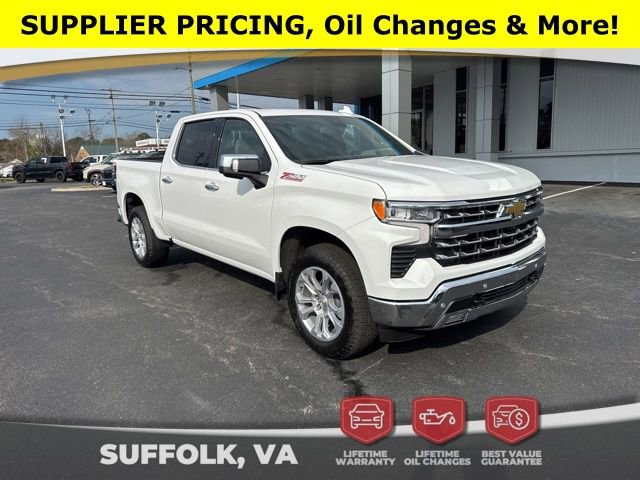 Look at this 2026 Chevrolet Silverado 1500 LTZ At Duke Chevrolet GMC in Suffolk VA. 757-539-8777 It's All About U with Lifetime U Rewards. All New Chevy & GMC vehicles come with a Lifetime Powertrain Warranty, Lifetime Oil Changes, our Best Price Guarantee. Plus VA State Inspections, 4-Day 200-Mile Exchange, and Lifetime Service & Parts Guarantee! Read our reviews & see why people choose Duke! Z71 Package, 4x4, Forward Collision Alert, Bed Liner, Lane Departure Assist, Blind Spot Technology, Navigation, Apple CarPlay & Android Auto, Premium Audio Package, Back Up Camera, All-Weather Floor Liners, OnStar, Heated & Cooled Seats, Leather, Sirius XM Radio, Silverado 1500 LTZ, 4D Crew Cab, EcoTec3 5.3L V8, 10-Speed Automatic, 4WD, Summit White, Gideon/Very Dark Atmosphere Leather, 10-Way Power Driver Seat with Lumbar, 10-Way Power Passenger Seat Adjuster with Lumbar, 12.3 Multicolor Reconfigurable Digital Display, 120-Volt Bed Mounted Power Outlet, 120-Volt Interior Power Outlet, 2 USB Data Ports, All-Weather Floor Liner, Auto-Dimming Inside Rear-View Mirror, Auto-Locking Rear Differential, Bluetooth® For Phone, Chevytec Spray-on Black Bedliner, Chrome Mirror Caps, Color-Keyed Carpeting Floor Covering, Deep-Tinted Glass, Driver Memory, Dual Exhaust with Black Exhaust Tips, Dual Rear USB Ports (charge Only), Electric Rear-Window Defogger, Electronic Cruise Control, Floor Mounted Center Console, Front Bucket Seats, Front Frame-Mounted Black Recovery Hooks, Front LED Fog Lamps, Front Rain-Sensing Wipers, Front Rubberized Vinyl Floor Mats, HD Surround Vision, Heated Driver and Front Outboard Passenger Seats, Heated Steering Wheel, Heavy-Duty Air Filter, High Capacity Suspension Package, Hill Descent Control, Hitch Guidance, Hitch Guidance with Hitch View, in-Vehicle Trailering System App, Integrated Trailer Brake Controller, Keyless Open and Start, LED Cargo Area Lighting, LTZ Convenience Package, LTZ Plus Package, Navigation System, Off-Road Suspension, OnStar Services Capable, Outside Heated Power-Adjustable Mirrors, Perimeter Lighting, Power Front Passenger Windows with Express Up/Down, Power Front Windows with Driver Express Up/Down, Power Rear Windows with Express Down, Power Tailgate, Power Tilt and Telescoping Steering Column, Preferred Equipment Group 1LZ, Premium Bose 7-Speaker Sound System, Rear Cross Traffic Braking, Rear Pedestrian Alert, Rear Rubberized-Vinyl Floor Mats, Rear Wheelhouse Liners, Remote Vehicle Starter System, Safety Alert Seat, Safety Package, SiriusXM with 360L Trial Subscription, Standard Tailgate, Steering Wheel Audio Controls, Teen Driver, Theft Deterrent System (unauthorized Entry), Tire Pressure Monitoring System, Trailer Camera Provisions, Trailer Side Blind Zone Alert, Trailering Package, Ultrasonic Front and Rear Park Assist, Up-Level Rear Seat with Storage Package, Ventilated Driver and Front Passenger Seats, Wi-Fi Hot Spot Capable, Wireless Charging, Wrapped Steering Wheel, Z71 Off-Road and Protection Package, Z71 Off-Road Package.