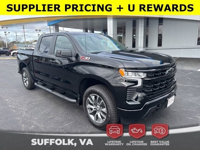 At Duke Chevy GMC in Suffolk VA. 757-539-8777. 2026 Chevrolet Silverado 1500 RST At Duke Chevrolet GMC in Suffolk VA. 757-539-8777 It's All About U with Lifetime U Rewards. All New Chevy & GMC vehicles come with a Lifetime Powertrain Warranty that covers your Engine, Transmission and Transaxle! Lifetime Oil Changes, our Best Price Guarantee. Plus VA State Inspections, 4-Day 200-Mile Exchange, and Lifetime Service & Parts Guarantee! Read our reviews & see why people choose Duke! Z71 Package, RST Package, Preferred Package, 4x4, Navigation, Apple CarPlay & Android Auto, Silverado 1500 RST, 4D Crew Cab, EcoTec3 5.3L V8, 10-Speed Automatic, 4WD, Black, Jet Black Leather, 10-Way Power Driver Seat with Lumbar, 120-Volt Bed Mounted Power Outlet, 120-Volt Interior Power Outlet, 170 Amp Alternator, 2 USB Data Ports, All-Weather Floor Liner, Chevytec Spray-on Black Bedliner, Convenience Package, Convenience Package II, Dual Exhaust with Polished Outlets, Dual Rear USB Ports (charge Only), Dual-Zone Automatic Climate Control, Electric Rear-Window Defogger, Electronic Transmission Range Selector Shifter, Floor Mounted Center Console, Front Bucket Seats, Heated Driver and Front Outboard Passenger Seats, Heated Steering Wheel, Heavy-Duty Air Filter, Hill Descent Control, Hitch Guidance, Hitch Guidance with Hitch View, in-Vehicle Trailering System App, Keyless Open and Start, Leather Package, Leather-Appointed Front Seat Trim, LED Cargo Area Lighting, Manual Tilt/Telescoping Steering Column, Navigation System, Off-Road Suspension, Power Sliding Rear Window with Rear Defogger, Premium Bose 7-Speaker Sound System, Protection Package, Rear Wheelhouse Liners, Remote Vehicle Starter System, Standard Suspension Package, Theft Deterrent System (unauthorized Entry), Trailering Package, Universal Home Remote, Up-Level Rear Seat with Storage Package, Wheels: 20 x 9 Painted Aluminum, Wireless Charging, Wrapped Steering Wheel, Z71 Off-Road and Protection Package, Z71 Off-Road Package.