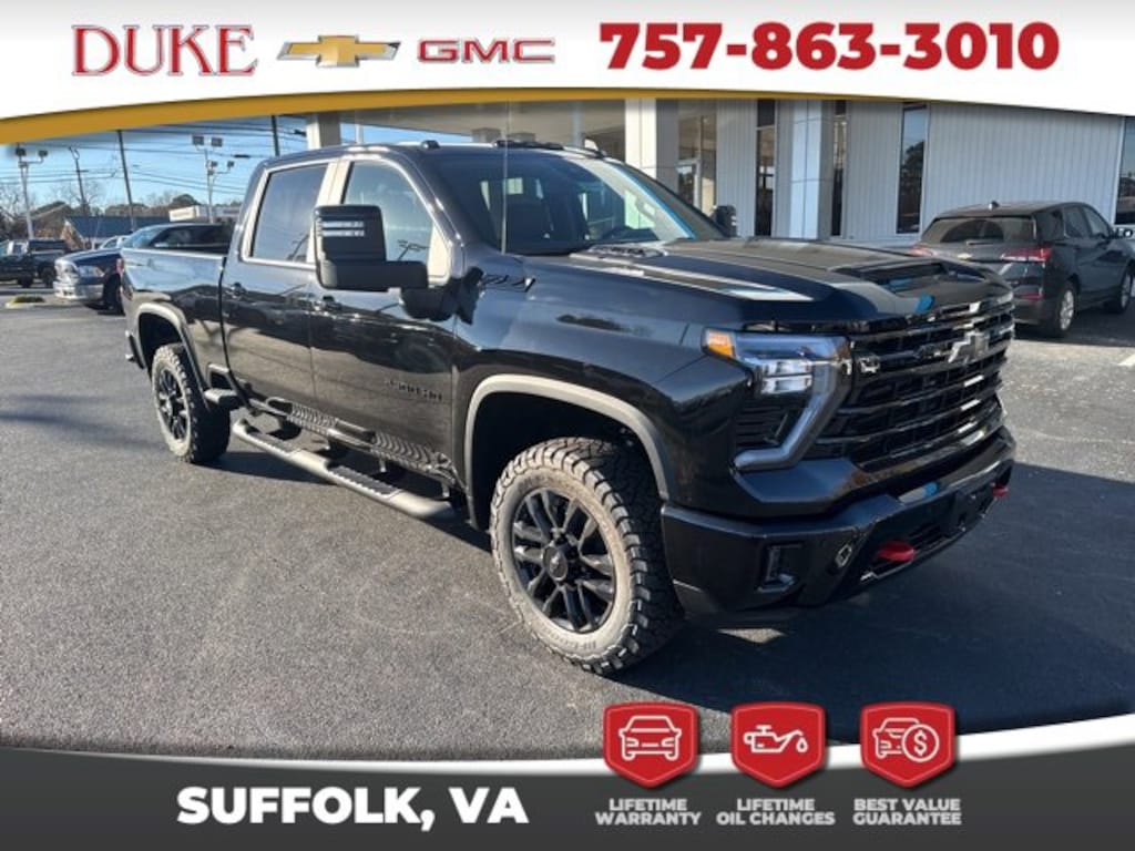 Look at this 2026 Chevrolet Silverado 2500HD LT At Duke Chevrolet GMC in Suffolk VA. 757-539-8777 It's All About U with Lifetime U Rewards. All New Chevy & GMC vehicles come with a Lifetime Powertrain Warranty, Lifetime Oil Changes, our Best Price Guarantee. Plus VA State Inspections, 4-Day 200-Mile Exchange, and Lifetime Service & Parts Guarantee! Read our reviews & see why people choose Duke! Z71 Package, Trailboss Package, LT Package, 4x4, Forward Collision Alert, Bed Liner, Trailer Package, Lane Departure Assist, Blind Spot Technology, Hill Descent Control, Navigation, Apple CarPlay & Android Auto, 4G LTE WiFi Hotspot Built In, Chevy MyLink, Infotainment Package, Premium Audio Package, Back Up Camera, All-Weather Floor Liners, Bluetooth, Sirus XM Radio, OnStar, Leather, Heated Seats, Silverado 2500HD LT, 4D Crew Cab, 6.6L V8, 10-Speed Automatic, 4WD, Black, Jet Black Cloth, 10-Way Power Driver Seat Adjuster w/Lumbar, Animated LED Projector Headlamps, Auto-Dimming Inside Rear-View Mirror, Bed View Camera w/2 Trailer Camera Provisions, Black Chevytec Spray-On Bedliner, Black Grille Bar w/Chevy Black Bow Tie, Cloth Rear Seat w/Storage Package, Convenience Package, Convenience Package II, Dual-Zone Automatic Climate Control, Electric Rear-Window Defogger, Front Frame-Mounted Red Recovery Hooks, Front LED Fog Lamps, HD Surround Vision, Heat Package, Heated & Auto-Dimming Vertical Trailering Mirrors, Heated Driver & Front Outboard Passenger Seating, Heated Steering Wheel, High Gloss Black Door Handles, High Gloss Black Front Bumper, High Gloss Black Mirror Caps, High Gloss Black Rear Bumper, Hill Descent Control, Hitch Guidance w/Hitch View, In-Vehicle Trailering App System, Leather Package, LED Cargo Area Lighting, Manual Tilt & Telescoping Steering Column, Navigation System, Off-Road Suspension, Power Sliding Rear Window w/Defogger, Rear Cross Traffic Alert, Remote Start Package, Remote Vehicle Starter System, Safety Package, Suspension Package, Trail Boss Package, Trailer Camera Provisions, Trailer Side Blind Zone Alert, Ultrasonic Front & Rear Park Assist, Unauthorized Entry Theft-Deterrent System, Universal Home Remote, Up-Level Rear Seat w/Storage Package, Wheels: 20 High Gloss Black Painted, Z71 Off-Road Package.