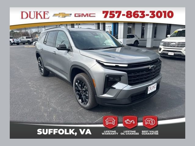 Look at this. 2026 Chevrolet Traverse LT At Duke Chevrolet GMC in Suffolk VA. 757-539-8777 It's All About U with Lifetime U Rewards. All New Chevy & GMC vehicles come with a Lifetime Powertrain Warranty, Lifetime Oil Changes, our Best Price Guarantee. Plus VA State Inspections, 4-Day 200-Mile Exchange, and Lifetime Service & Parts Guarantee! Read our reviews & see why people choose Duke! LT Package, Traverse LT 1LT, 4D Sport Utility, 2.5L DOHC, 8-Speed Automatic, FWD, Sterling Gray Metallic, Jet Black w/Evotex Seat Trim, 1st and 2nd Row All-Weather Floor Liners, 3rd Row All-Weather Floor Liner, Driver Confidence Package, Floor Liner Package, HD Surround Vision, High Gloss Black Door Upper Molding, Integrated Cargo Liner, Key Card, Midnight/Sport Edition, Power Outlet, Rear Camera Mirror, Rear Pedestrian Alert, Traffic Sign Recognition, Wheels: 20 High Gloss Black Painted Aluminum.