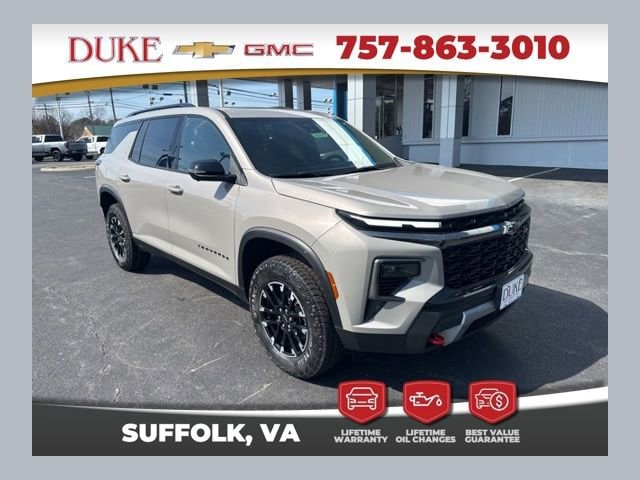 Look at this. 2026 Chevrolet Traverse Z71 At Duke Chevrolet GMC in Suffolk VA. 757-539-8777 It's All About U with Lifetime U Rewards. All New Chevy & GMC vehicles come with a Lifetime Powertrain Warranty, Lifetime Oil Changes, our Best Price Guarantee. Plus VA State Inspections, 4-Day 200-Mile Exchange, and Lifetime Service & Parts Guarantee! Read our reviews & see why people choose Duke! Z71 Package, AWD, Traverse Z71, 4D Sport Utility, 2.5L DOHC, 8-Speed Automatic, AWD, Sandstone Gray, Z71 Jet Black With Torch Red Stitching, 1st and 2nd Row All-Weather Floor Liners, 3rd Row All-Weather Floor Liner, Driver Confidence Package, Floor Liner Package, HD Surround Vision, Integrated Cargo Liner, Key Card, Power Outlet, Rear Camera Mirror, Rear Pedestrian Alert, Traffic Sign Recognition.