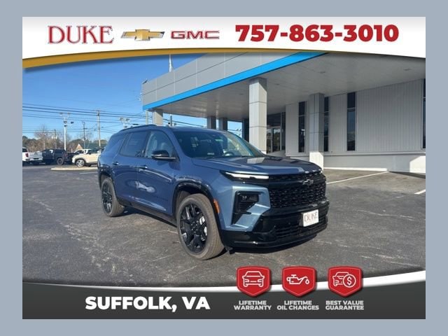 Look at this 2026 Chevrolet Traverse RS At Duke Chevrolet GMC in Suffolk VA. 757-539-8777 It's All About U with Lifetime U Rewards. All New Chevy & GMC vehicles come with a Lifetime Powertrain Warranty, Lifetime Oil Changes, our Best Price Guarantee. Plus VA State Inspections, 4-Day 200-Mile Exchange, and Lifetime Service & Parts Guarantee! Read our reviews & see why people choose Duke! Trailer Package, Adaptive Cruise Control, Super Cruise, Lane Departure Assist, Blind Spot Technology, Power 3rd Row Seats, Sunroof / Moonroof, Navigation, Apple CarPlay & Android Auto, Bose Sound System, All-Weather Floor Liners, OnStar, Heated & Cooled Seats, Power Liftgate, 7 Passenger, RS Package, Traverse RS, 4D Sport Utility, 2.5L DOHC, 8-Speed Automatic, FWD, Lakeshore Blue Metallic, Rs Jet Black With Torch Red Accents Leather, 1st and 2nd Row All-Weather Floor Liners, 3rd Row All-Weather Floor Liner, Floor Liner Package, Integrated Cargo Liner, Navigation System.