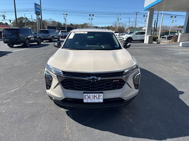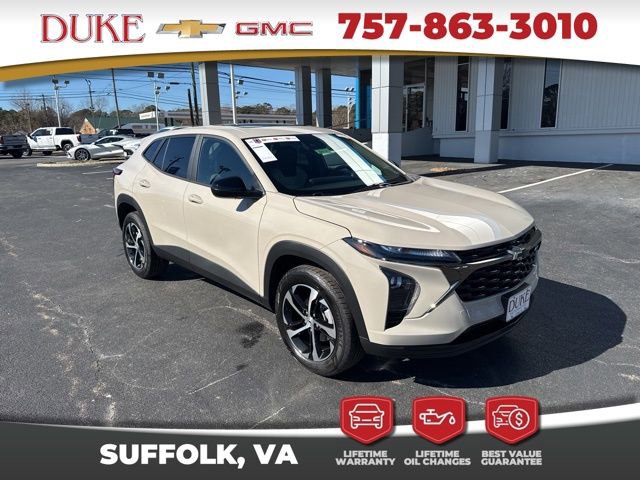 Look at this 2026 Chevrolet Trax 1RS At Duke Chevrolet GMC in Suffolk VA. 757-539-8777 It's All About U with Lifetime U Rewards. All New Chevy & GMC vehicles come with a Lifetime Powertrain Warranty, Lifetime Oil Changes, our Best Price Guarantee. Plus VA State Inspections, 4-Day 200-Mile Exchange, and Lifetime Service & Parts Guarantee! Read our reviews & see why people choose Duke! Sunroof / Moonroof, Apple CarPlay & Android Auto, Bluetooth, Heated Seats, Trax 1RS, 4D Sport Utility, ECOTEC 1.2L Turbo, 6-Speed Automatic, FWD, White Sands, Jet Black/Gray With Red Accents Cloth, Driver Confidence Package, Lane Change Alert with Side Blind Zone Alert, License Plate Front Mounting Package, Power Sliding Glass Sunroof with Manual Shade, Rear Cross Traffic Alert, Rear Park Assist, Sunroof Package.