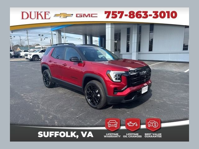 Look at this. 2026 GMC Terrain Elevation At Duke Chevrolet GMC in Suffolk VA. 757-539-8777 It's All About U with Lifetime U Rewards. All New Chevy & GMC vehicles come with a Lifetime Powertrain Warranty, Lifetime Oil Changes, our Best Price Guarantee. Plus VA State Inspections, 4-Day 200-Mile Exchange, and Lifetime Service & Parts Guarantee! Read our reviews & see why people choose Duke! Terrain Elevation, 4D Sport Utility, 1.5L DOHC, CVT, FWD, Volcanic Red Tintcoat, After Dark Cloth, Black Edition, Black Exterior Accents and Black Exterior Badging, Black Mirror Caps, Darkened Grille and C Shaped Surrounding Bezel, Gloss Black Roof-Mounted Side Rails, Wheels: 19 Gloss Black Painted Aluminum.