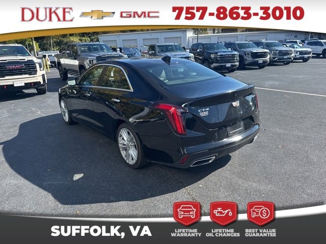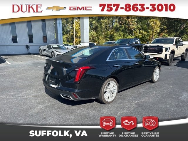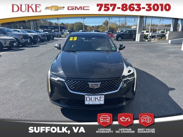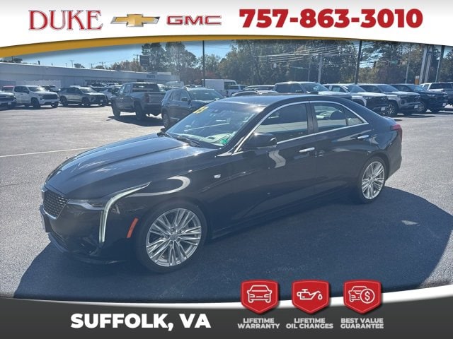 The 2023 Cadillac CT4 Premium Luxury represents the pinnacle of refined performance, sophistication, and craftsmanship, offering an exquisite driving experience designed for those who demand more than just transportation they demand prestige, power, and precision. Available now at Duke Chevrolet GMC in Suffolk, Virginia, and easily reached at 757-539-8777, this elegant sedan embodies Cadillacs legacy of excellence, combining modern technology with timeless luxury. Finished in a striking Black Raven exterior complemented by a Jet Black leather interior with Jet Black accents, the CT4 exudes confidence and poise from every angle. The aerodynamic design merges sharp lines with sculpted contours to create a profile that commands attention while optimizing performance and efficiency. Beneath its refined exterior lies a 2.0-liter turbocharged engine paired with an 8-speed automatic transmission, delivering an exceptional balance of power, responsiveness, and fuel economy. The rear-wheel-drive configuration enhances agility and driving dynamics, ensuring every turn feels purposeful and composed. This 4D sedan is meticulously engineered for comfort, control, and performance, providing a driving experience that blends luxury and excitement in perfect harmony. Purchasing this Cadillac from Duke Chevrolet GMC means more than owning a premium vehicle it means joining a tradition of excellence supported by Dukes exclusive Lifetime U Benefits, including Lifetime Oil Changes, a 12-Month/12,000-Mile Powertrain Warranty, Lifetime Virginia State Inspections, a 4-Day/200-Mile Exchange Policy, and a Lifetime Service and Parts Guarantee. Additionally, this CT4 is GM Certified Ready, backed by a 6-Year/100,000-Mile Warranty, ensuring unmatched peace of mind and long-term reliability for years to come.