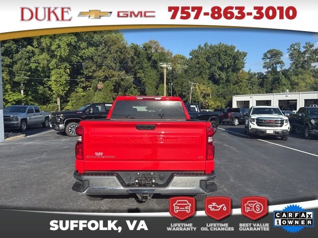 The 2022 Chevrolet Silverado 1500 LT available at Duke Chevrolet GMC in Suffolk, Virginia, embodies the balance of rugged capability and refined sophistication that defines Americas most iconic truck lineage, offering a blend of modern technology, exceptional performance, and dealership-backed confidence that makes it stand out in any category. This CARFAX One-Owner model, with an odometer reading 8,633 miles below market average, reflects a level of care and value that discerning truck buyers appreciate, and it comes supported by Duke Chevrolet GMCs signature Lifetime U Benefits, which include Lifetime Oil Changes, a 12-month/12,000-mile Powertrain Warranty, Virginia State Inspections, a 4-day/200-mile exchange policy, and a Lifetime Service and Parts Guarantee. From the moment it catches your eye, the Red Hot exterior sets the tone for the Silverados bold personality, while its clean lines, muscular stance, and aerodynamic detailing project both strength and precision. Under the hood, a 2.7L Turbo engine paired with an 8-speed automatic transmission delivers impressive power and responsiveness, perfectly complemented by 4WD capability that ensures mastery over every type of terrainfrom rugged back roads to long, open stretches of highway. The Silverados LT Package adds refined styling and intelligent upgrades, while the Trailering Package makes this truck as functional for hauling and towing as it is comfortable for daily driving. Lane Departure Assist, Blind Spot Monitoring, and Back-Up Warning Sensors enhance safety with cutting-edge technology, while Apple CarPlay, Android Auto, Bluetooth, and SiriusXM integration make every drive as connected as it is commanding. Every Silverado from Duke Chevrolet GMC represents more than engineering excellence it represents a lifelong commitment to the driver through programs like Lifetime U Rewards, ensuring that every journey is supported by the dealerships promise of care, service, and trust for as long as you own the truck.