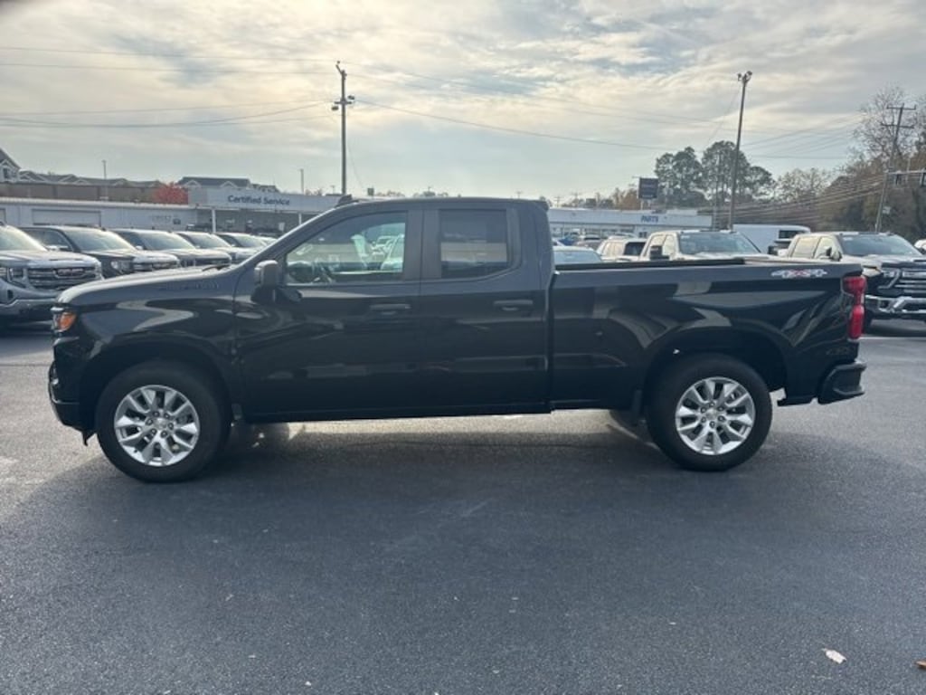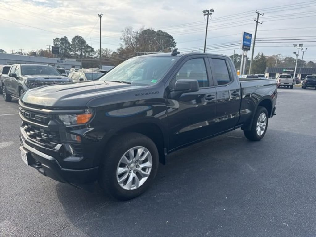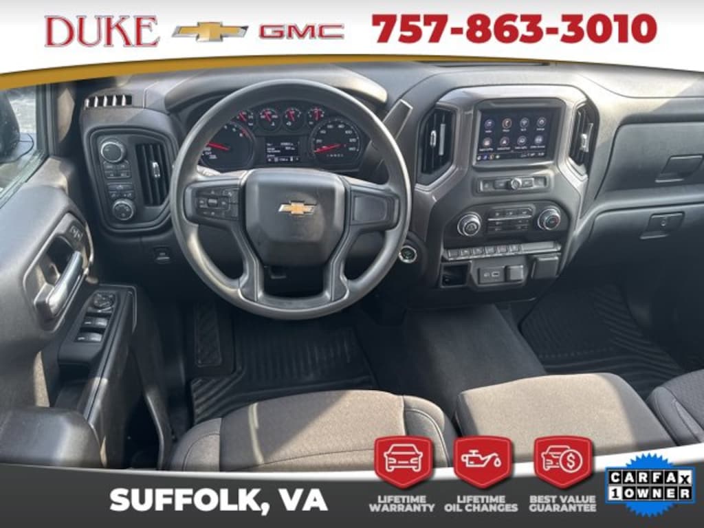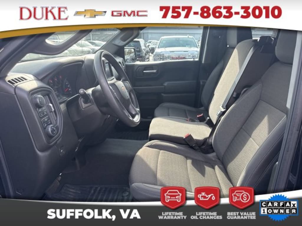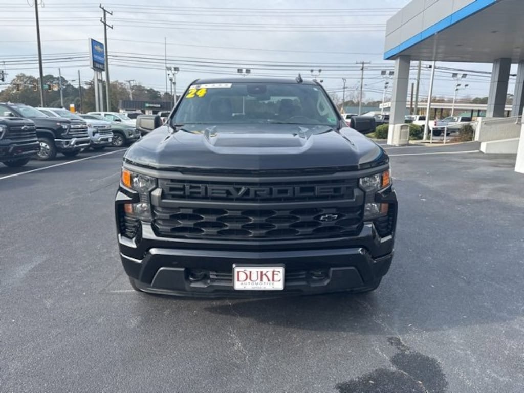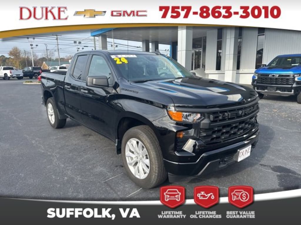 The 2024 Chevrolet Silverado 1500 Custom represents the latest evolution of one of Americas most trusted truck nameplates, blending modern performance, advanced engineering, and durability into one commanding full-size pickup that exceeds expectations for work, travel, and everyday driving. Now available at Duke Chevrolet GMC in Suffolk, Virginia, this CARFAX One-Owner truck arrives in exceptional condition with an odometer reading that sits an impressive 8,833 miles below the market average, highlighting its careful use and well-preserved mechanical life. Finished in sleek black exterior paint and complemented by a matching black cloth interior, the Silverado 1500 Custom projects confidence, refinement, and rugged capability from every angle. This 4D Extended Cab configuration offers a balance between passenger comfort and versatile cargo space, making it ideal for a wide range of personal, professional, and recreational needs. Under the hood, the powerful 2.7-liter turbocharged four-cylinder engine delivers 310 horsepower and exceptional torque, providing strength and responsiveness for towing, hauling, commuting, and off-road exploration. Paired with a smooth-shifting 8-speed automatic transmission and an advanced 4WD system, this Silverado ensures reliable traction, confident acceleration, and balanced handling in all conditions, from rain-slicked pavement to gravel job sites or muddy backroads. At Duke Chevrolet GMC, every Silverado is supported by the dealerships exclusive Lifetime U Benefits, including Lifetime Oil Changes, a 12-Month/12,000-Mile Powertrain Warranty, Lifetime State Inspections, a 4-Day/200-Mile Exchange Policy, and a Lifetime Service & Parts Guarantee, giving buyers long-term peace of mind and value that extends far beyond the initial sale. These benefits reflect Dukes reputation for trust, transparency, and customer-first service, which explains why drivers throughout Virginia continue to choose Duke for their automotive needs.