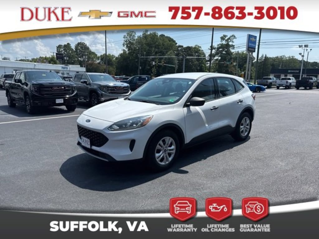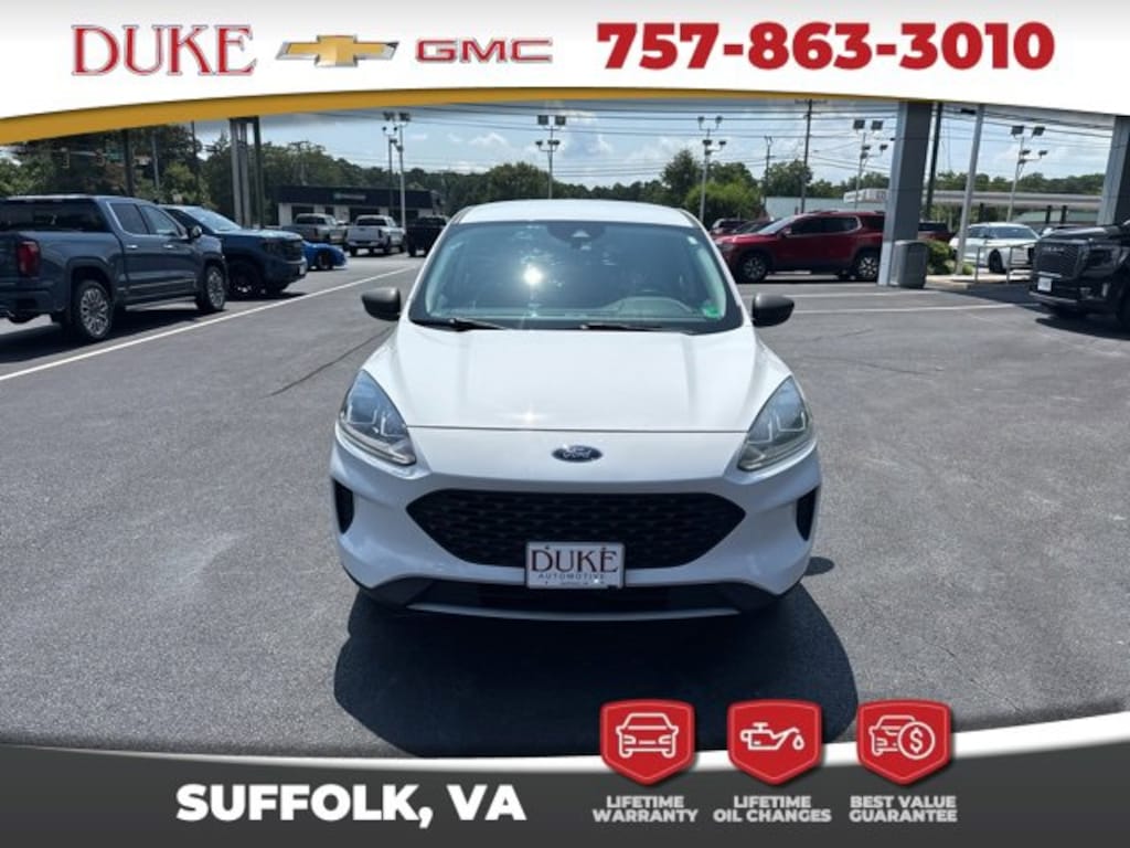 The 2022 Ford Escape S in Oxford White is a compelling combination of value, safety, comfort, and technology, offering drivers a refined compact SUV experience backed by Duke Chevrolet GMCs exclusive Lifetime U Benefits, which include Lifetime Oil Changes, a 12-Month/12,000-Mile Powertrain Warranty, VA State Inspections, a 4-Day/200-Mile Exchange Program, and a Lifetime Service & Parts Guarantee, making this CARFAX One-Owner vehicle not only smart to drive but smart to own; from the moment you sit behind the wheel of this Escape S, you'll notice thoughtful attention to both driver and passenger experience, starting with its responsive 1.5L EcoBoost engine paired to an efficient 8-Speed Automatic Transmission delivering confident power and smooth handling across a variety of driving conditions, while its Front-Wheel Drive system offers a composed and predictable ride thats ideal for commuting, family errands, or weekend trips, and with standard features like Auto High-Beam Headlights, 4-Wheel Disc Brakes, ABS, Brake Assist, Electronic Stability Control, Traction Control, and Dual-Stage Airbags throughout the cabin, this Escape keeps safety at the forefront of every journey, while the integrated Blind Spot Monitoring System and Back-Up Warning Sensors provide added confidence when navigating tight spaces or merging on busy highways.Step inside and youll find a surprisingly spacious and well-laid-out interior dressed in Dark Earth Gray cloth, featuring supportive Cloth Front Bucket Seats, a Front Center Armrest, and Rear Folding Seats for flexible cargo management, while thoughtful amenities like Remote Keyless Entry, Air Conditioning, Power Windows, Power Door Mirrors, and a Tilt-and-Telescoping Steering Wheel allow the driver to personalize the environment easily; infotainment is intuitive and responsive through the SYNC Communications & Entertainment System with Apple CarPlay and Android Auto integration, Bluetooth Hands-Free Connectivity, 6-speaker AM/FM Stereo, and Steering Wheel-Mounted Audio Controls, keeping your hands on the wheel and eyes on the road while staying fully connected, and when reversing or navigating in tight quarters, the Exterior Parking Camera Rear delivers a crisp view for confident maneuvering, while FordPass Connect provides additional app-based features and remote vehicle access, offering even more convenience and peace of mind for modern drivers who expect their vehicle to work seamlessly with their daily tech.Built for both comfort and functionality, this 4D Sport Utility is engineered with smart details such as Speed Control for long drives, Variably Intermittent Wipers for ever-changing weather conditions, a Rear Window Defroster for colder mornings, and Delay-Off Headlights that provide illumination after exiting the vehicle, enhancing your safety when walking away in low-light conditions; with seating for five, generous headroom, and versatile storage options, the Escape S proves ideal for active families, commuters, and anyone needing the versatility of an SUV without sacrificing fuel efficiency or maneuverability, and with its modern design that includes body-colored accents, a rear spoiler, and bold grille, the Escape strikes a sporty stance while retaining the practical nature Fords SUV lineup is known for, ensuring that even daily drives feel engaging and elevated.Fords engineering expertise is evident in every inch of the Escape S, with a lightweight yet strong body structure, advanced suspension tuning for a comfortable ride, and intelligent safety technologies that actively work with you rather than merely alert you, such as the Occupant Sensing Airbag System, Overhead Airbags, Panic Alarm, and Tire Pressure Monitoring System, all adding to a comprehensive approach to protection; the cabin design emphasizes clean lines, logical placement of controls, and user-friendly tech, creating an environment that caters to both seasoned drivers.