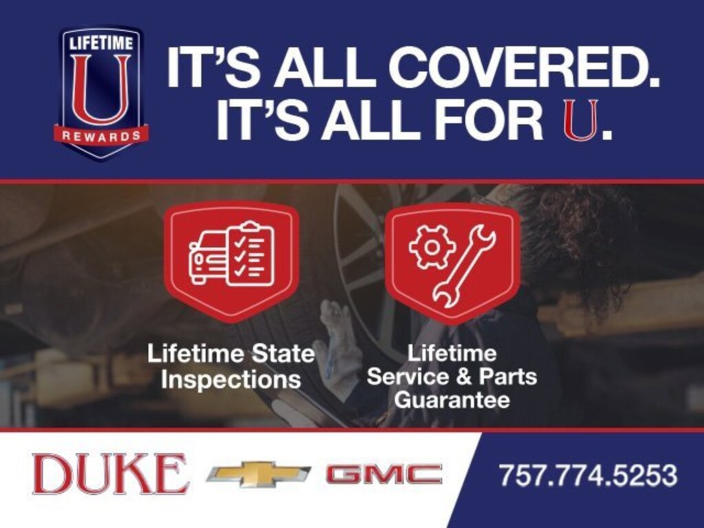 We don't hide anything, ALL PRICES INCLUDE FREIGHT on new vehicles. Prices do not include taxes, tags, title, any finance charges, dealer $599 processing fee (Lowest Chevy GMC Dealer in Hampton Roads), or any other DMV fees. All prices, specifications and availability subject to change without notice. While every reasonable effort is made to ensure the accuracy of this data, Duke Automotive not responsible for any errors or omissions contained on these pages by 3rd party vendors. Please verify any information in question with a Duke representative.
