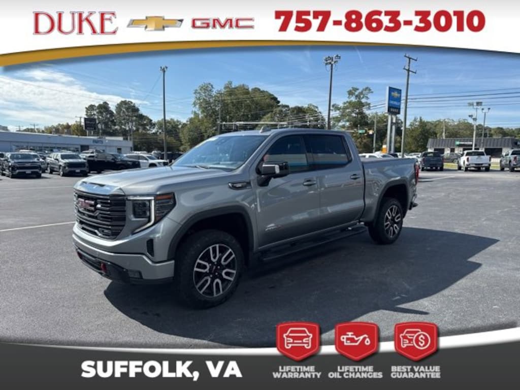 The 2023 GMC Sierra 1500 AT4 in Sterling Metallic with Jet Black and Kalahari accented leather represents the pinnacle of rugged sophistication, and at Duke Chevrolet GMC in Suffolk, Virginia, it is more than just a truckit is an invitation into an ownership journey anchored by the dealerships legendary Lifetime U Rewards program. Imagine climbing into a vehicle that has been carefully engineered with advanced features like a 3.0L I6 engine, a ten-speed automatic transmission, and four-wheel drive capability, then realizing that the ownership experience doesnt end when you drive off the lot. Instead, it only begins, because Dukes U Rewards bundle includes lifetime oil changes, a twelve-month, twelve-thousand-mile powertrain warranty, complimentary Virginia state inspections, and even a four-day, two-hundred-mile exchange program. That means every mile you put on this one-owner, CARFAX-certified truck is backed by a promise of value and trust that extends long after the papers are signed. For families, professionals, and outdoor adventurers alike, the Sierra AT4 offers an extraordinary blend of strength and refinement, and Duke Chevrolet GMC ensures that its benefits are reinforced through a service guarantee that lasts as long as your relationship with the truck. In an age where customer loyalty is rare, this dealership stands out because it rewards drivers in tangible, lasting ways, proving that buying a vehicle is not a transaction but a partnership.