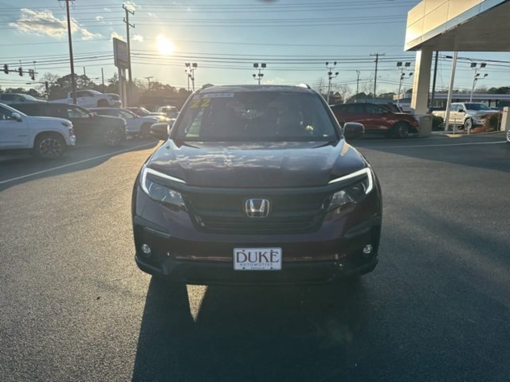 The 2022 Honda Pilot Special Edition stands as a refined and highly capable midsize SUV designed to meet the demands of modern families and drivers who value versatility, comfort, and long-term reliability. Offered at Duke Chevrolet GMC in Suffolk, Virginia, this CARFAX One-Owner Pilot presents an outstanding opportunity with an odometer reading 3,149 miles below market average, reflecting careful ownership and limited use. Finished in an elegant burgundy exterior paired with a premium leather interior, this Pilot delivers a sophisticated appearance while maintaining the practical durability Honda is known for. As a non-smoker vehicle with a clean history report, it offers peace of mind from the moment you step inside. The Special Edition trim enhances the already impressive Pilot platform with additional comfort, technology, and styling elements that elevate everyday driving into a more enjoyable and confident experience. Duke Chevrolet GMC further strengthens the value of this SUV by including Lifetime Oil Changes, a 12-Month or 12,000-Mile Powertrain Warranty, Lifetime Virginia State Inspections, a 4-Day or 200-Mile Exchange Policy, and a Lifetime Service and Parts Guarantee, ensuring that ownership remains rewarding long after purchase.