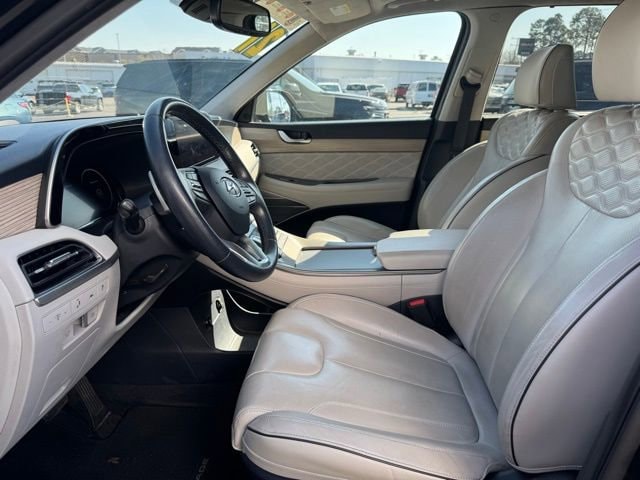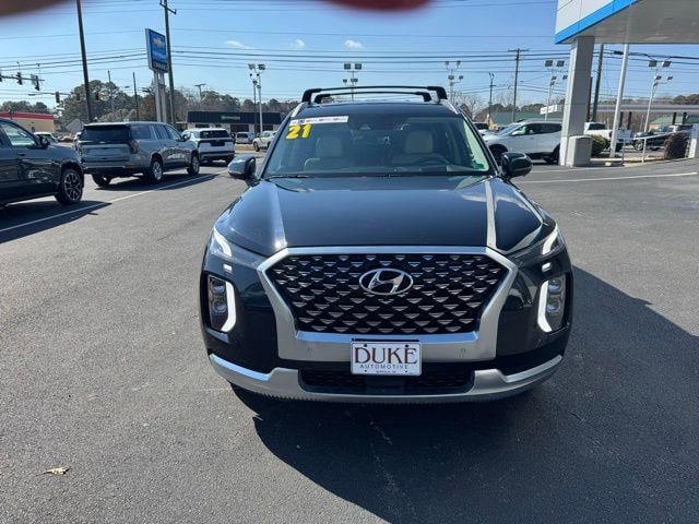 The 2021 Hyundai Palisade Calligraphy represents the pinnacle of Hyundais commitment to craftsmanship, luxury, and family focused versatility, delivering a refined driving experience wrapped in bold design and advanced technology. Available now at Duke Chevrolet GMC in Suffolk Virginia, this CARFAX One Owner sport utility vehicle stands out as a premium choice for drivers seeking both sophistication and practicality, further enhanced by an odometer reading 25,228 miles below market average which highlights its light usage and well preserved condition. Finished in elegant Moonlight Cloud with a beautifully appointed Beige leather interior, this Palisade creates a striking visual presence while offering a warm and inviting cabin atmosphere designed for comfort on every journey. As a local trade that has never been used as a rental and verified as a non smoker vehicle, it reflects careful ownership and attention to detail that discerning buyers value. Duke Chevrolet GMC enhances the ownership experience through its exclusive Lifetime U Benefits program, which includes Lifetime Oil Changes, a 12 Month 12,000 Mile Powertrain Warranty, Lifetime Virginia State Inspections, a 4 Day 200 Mile Exchange Policy, and a Lifetime Service and Parts Guarantee, ensuring peace of mind and long term value well beyond the initial purchase. The Palisade Calligraphy is engineered to meet the needs of modern drivers who expect premium comfort, advanced safety, and everyday functionality in one cohesive and thoughtfully designed vehicle.Performance in the 2021 Hyundai Palisade Calligraphy is defined by smooth power delivery, confident handling, and a ride quality that balances refinement with capability. The proven V6 engine paired with an advanced eight speed automatic transmission with SHIFTRONIC provides responsive acceleration and efficient performance whether driving in city traffic or cruising on the highway. The all wheel drive system enhances traction and stability across varying road conditions, offering added confidence during rain, snow, or uneven terrain. Four wheel disc brakes provide consistent stopping power, while advanced stability and traction systems work seamlessly to maintain control during dynamic driving situations. The auto leveling suspension contributes to a composed ride by adjusting to changes in passenger or cargo load, ensuring comfort and stability remain consistent. The trailer package expands versatility by enabling the Palisade to handle towing duties with ease, making it suitable for hauling recreational gear or small trailers. Speed control enhances long distance comfort by allowing drivers to maintain steady speeds effortlessly, while the precise steering system provides a reassuring sense of control. Together, these performance elements create a driving experience that feels refined yet capable, making the Palisade Calligraphy equally suited for daily commuting, family road trips, and weekend adventures.Inside, the 2021 Hyundai Palisade Calligraphy offers a cabin environment that rivals many luxury vehicles, combining premium materials with thoughtful design and exceptional comfort. The Beige leather seating surfaces provide a sophisticated appearance while offering supportive cushioning for long journeys. The spacious layout ensures ample legroom and headroom for passengers across multiple rows, creating a comfortable environment for families and guests alike. Air conditioning keeps the cabin climate controlled regardless of outside conditions, while power door mirrors and intuitive controls enhance convenience during everyday use. The power liftgate simplifies cargo loading and unloading, making it easy to access the generous storage area when carrying groceries, luggage, or recreational equipment. Rain sensing wipers automatically adjust to changing weather conditions, helping maintain visibility and reducing driver workload. The interior design emphasizes quietness and comfort.
