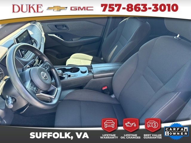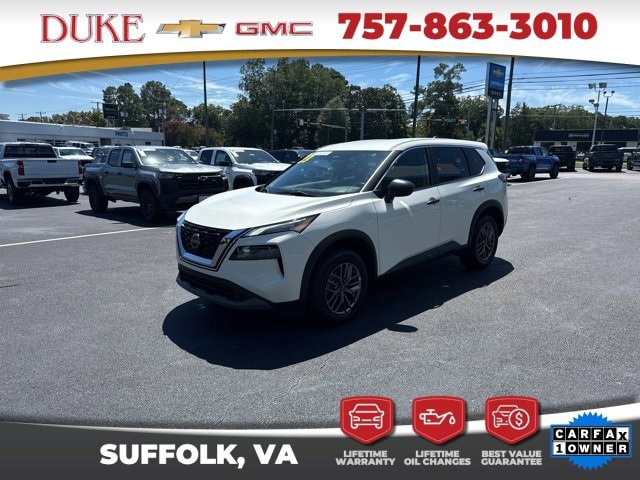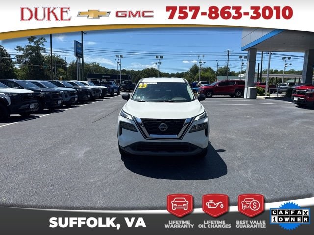 The 2023 Nissan Rogue S is a perfect embodiment of modern engineering, combining advanced technology, exceptional safety, and efficient performance in a sleek and stylish compact SUV. Available now at Duke Chevrolet GMC in Suffolk, Virginia, and easily reached by calling 757-539-8777, this CARFAX One-Owner Rogue offers outstanding value, with an odometer reading 13,008 miles below the market average, making it an exceptional opportunity for those seeking a practically new vehicle with proven reliability. Finished in an elegant Scarlet Ember Tintcoat exterior complemented by a refined Charcoal Cloth interior, this Rogue presents a bold yet sophisticated appearance that captures attention from every angle. Its powered by a 1.5-liter turbocharged I3 DOHC 12V engine that produces an impressive 201 horsepower while maintaining superb fuel efficiency, paired seamlessly with a CVT with Xtronic transmission that ensures smooth, effortless acceleration and optimal performance in any driving condition. Its All-Wheel Drive system provides enhanced traction and control, making it perfectly suited for everything from daily commutes to weekend adventures across varied terrains. Every feature in the Rogue S reflects Nissans commitment to quality, innovation, and driver satisfaction, blending cutting-edge safety technology, intuitive comfort features, and responsive handling in one complete package. When you purchase this Rogue from Duke Chevrolet GMC, you gain more than just a vehicleyou gain the assurance of Dukes exclusive Lifetime U Benefits, which include Lifetime Oil Changes, a 12-Month/12,000-Mile Powertrain Warranty, Lifetime Virginia State Inspections, a 4-Day/200-Mile Exchange Policy, and a Lifetime Service and Parts Guarantee. These unmatched benefits are designed to deliver lasting peace of mind, convenience, and long-term value, reflecting Dukes dedication to superior service and lifelong customer care that makes ownership truly effortless.