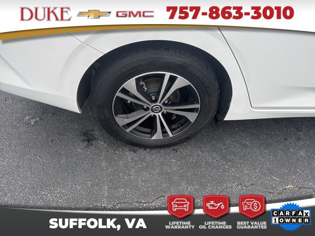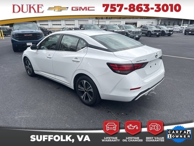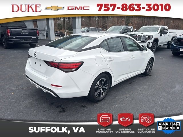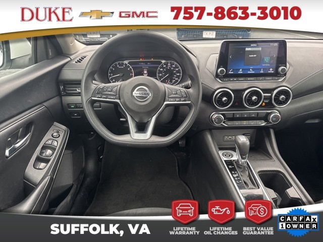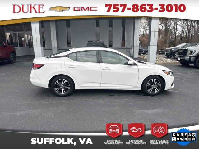 The 2023 Nissan Sentra SV stands as a thoughtfully engineered compact sedan that blends modern styling, intelligent safety, and everyday efficiency into a package designed for drivers who value comfort, reliability, and advanced connectivity. Now available at Duke Chevrolet GMC in Suffolk, Virginia, this CARFAX One-Owner Sentra SV reflects careful ownership and responsible use, further reinforced by its non-smoker status and clean history. Finished in the crisp and timeless Fresh Powder exterior color paired with a Charcoal Cloth interior, this Sentra presents a refined, contemporary appearance that feels equally appropriate in professional, personal, and family settings. Its sleek exterior design is highlighted by clean body lines and well-balanced proportions, creating a confident road presence without sacrificing efficiency or maneuverability. Under the hood, the Sentra SV is powered by a responsive 2.0-liter DOHC engine paired with Nissans CVT with Xtronic, a combination engineered to deliver smooth acceleration, excellent fuel economy, and a quiet, composed driving experience. The front-wheel-drive configuration enhances predictability and efficiency, making the Sentra an ideal choice for daily commuting, highway travel, and city driving alike. Every vehicle purchased at Duke Chevrolet GMC includes the exclusive Lifetime U Benefits program, offering Lifetime Oil Changes, a 12-Month or 12,000-Mile Powertrain Warranty, Lifetime Virginia State Inspections, a 4-Day or 200-Mile Exchange Policy, and a Lifetime Service and Parts Guarantee, ensuring long-term peace of mind and exceptional ownership value.