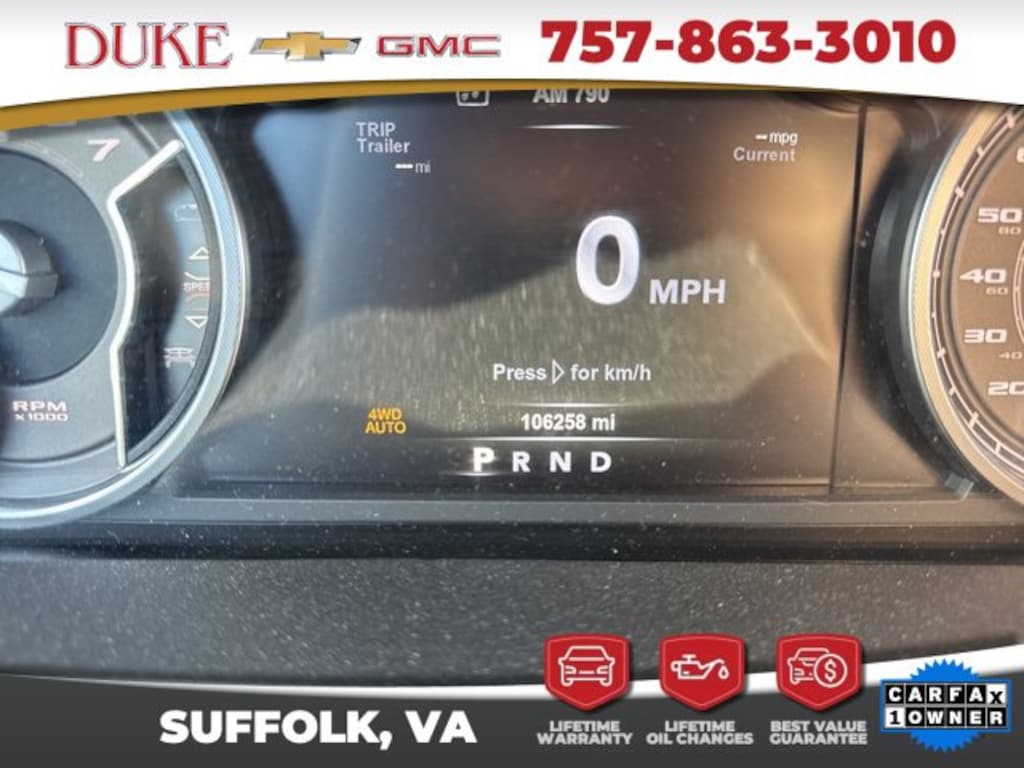 2017 Ram 1500 Limited CARFAX One-Owner. At Duke Chevrolet GMC in Suffolk VA. 757-539-8777. Lifetime Oil Changes, 12-Month 12,000 Mile Powertrain Warranty, VA State Inspections, 4-Day 200-Mile Exchange, and Lifetime Service & Parts Guarantee! All included with our Lifetime U Benefits! Read our reviews & see why people choose Duke! 4x4, Trailer Package, Blind Spot Technology, Back Up Warning Sensors, Apple CarPlay & Android Auto, Infotainment Package, Premium Audio Package, Back Up Camera, Bluetooth, Sirus XM Radio, Local Trade - Never a Rental, Non-Smoker, Limited Package, 1500 Limited, 4D Crew Cab, HEMI 5.7L V8 Multi Displacement VVT, 8-Speed Automatic, 4WD, Maximum Steel Metallic Clearcoat, Black Leather, 10 Speakers, 115V Auxiliary Power Outlet, 4-Corner Air Suspension, Active Grille Shutters, Air Conditioning, Alloy wheels, AM/FM radio, Auto High-beam Headlights, Automatic temperature control, Black Closeout Trim, Body Color Fender Flares, Body Color Front Fascia, Body Color Rear Bumper w/Step Pads, Brake assist, Bright Front Bumper, Bright Rear Bumper, Bucket Seats, Center Hub, Chrome Belt Moldings, Chrome Bodyside Molding, Chrome Bumper Package, Chrome Grille w/RAM Letters, Chrome Ram Badge, Class IV Receiver Hitch, Electronic Stability Control, Folding Flat Load Floor Storage, Heated Front Seats, Heated Second Row Seats, Heated Steering Wheel, High Back Seats, Laramie Limited Cluster, Laramie Limited Group, Laramie Limited Leather Bucket Seats, Leather Wrapped Grab Handle, Limited Tailgate Applique 4x4, Luxury Door Trim Panel, Luxury Front & Rear Floor Mats, Memory seat, Navigation System, Panic alarm, Power 10-Way Memory Driver & 6-Way Passenger Seats, Power driver seat, Power Lumbar Adjust, Power steering, Power windows, Quick Order Package 26V Limited, Rain sensing wipers, Ram 1500 Badge, Rear 60/40 Split Folding Seat, Rear Window Defroster, Security system, Speed control, Steering Wheel Mounted Audio Controls, Variably intermittent wipers, Ventilated Front Seats, Wheel to Wheel Side Steps, Wheels: 20 x 9 Painted Aluminum Chrome Insert, Wood/Leather Wrapped Steering Wheel.